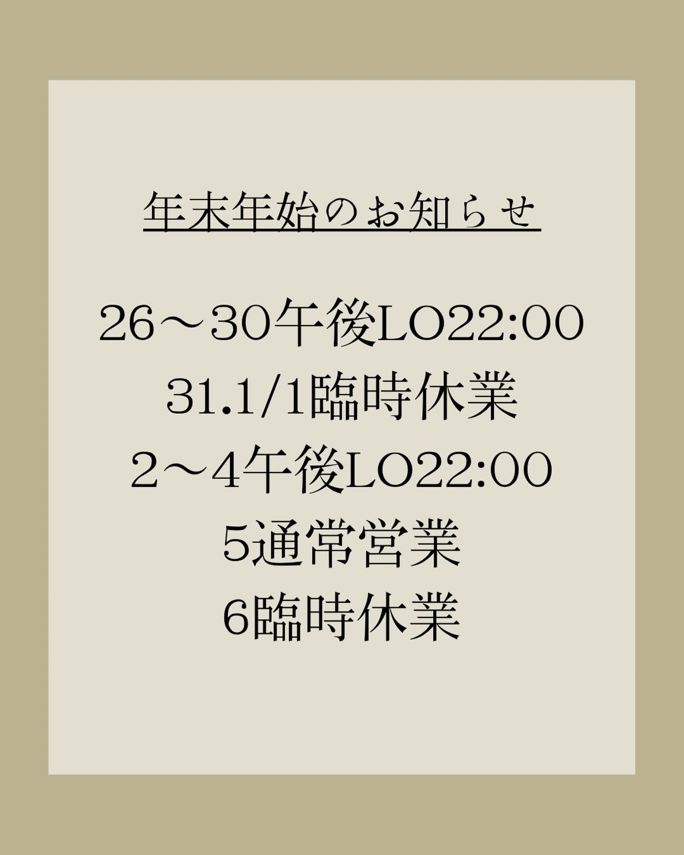 年末年始は営業日、時間共に変わりますのでお間違えのないようお気をつけください。